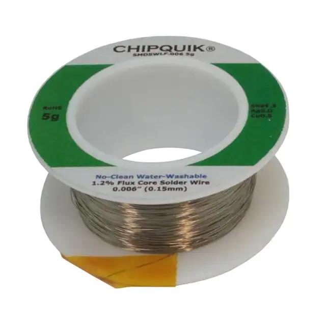 This is manufactured by Chip Quik Inc.. The manufacturer part number is SMDSWLF.006 5G. It is assigned with possible HTSUS value of 8311.30.6000. The product is rohs3 compliant. It comes in wire solder configuration. It is composed of sn96.5ag3cu0.5 (96.5/3/0.5). The product is designed as a nice spool, 0.176 oz (5g). In addition, it is reach unaffected. It is shipped in bulk. Its typical moisture sensitivity level is 1 (unlimited). It has a long 4 weeks standard lead time. Its diameter is 0.006" (0.15mm). The product is designated with the ear99 code number