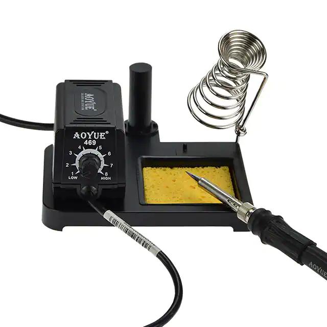 This is manufactured by SRA Soldering Products. The manufacturer part number is AO469. It is assigned with possible HTSUS value of 8515.19.0000. The product is rohs compliant. The possible product's input voltage is 110v. It comes in soldering configuration. In addition, it is reach unaffected. The product is also supplied with iron holder, sponge. It is supplied with 1 channels. The product's typical temperature range incudes 572°f ~ 896°f (300°c ~ 480°c). It is shipped in box. Its typical moisture sensitivity level is 1 (unlimited). It has a long 14 weeks standard lead time. The splendid features of the product include ceramic heater. The product aoyue®, is a highly preferred choice for users. The product is designated with the ear99 code number