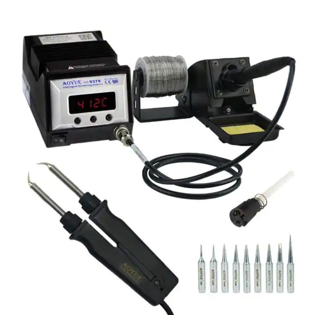 This is manufactured by SRA Soldering Products. The manufacturer part number is AO9378+MACRO. It is assigned with possible HTSUS value of 8515.19.0000. The product is rohs compliant. The possible product's input voltage is 110v. It comes in soldering configuration. In addition, it is reach unaffected. The product is also supplied with power cord. It is supplied with 2 channels. It is shipped in box. Its typical moisture sensitivity level is 1 (unlimited). It has a long 20 weeks standard lead time. The splendid features of the product include ceramic heater, temperature control. The product aoyue®, is a highly preferred choice for users. Furthermore, the output voltage is 24v. The product is designated with the ear99 code number