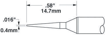 This is 0.4 mm Straight Conical Soldering Iron Tip manufactured by Metcal. The manufacturer part number is STTC-145.