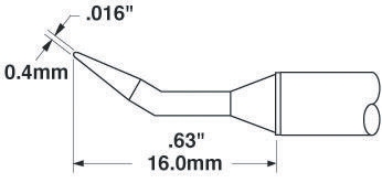 This is 0.4 mm 30° Bent Conical Soldering Iron Tip manufactured by Metcal. The manufacturer part number is STTC-040.