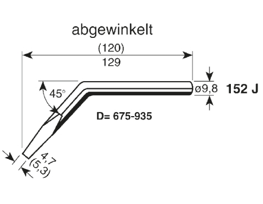 This is 5.3 mm 45° Bent Chisel Soldering Iron Tip for use with ERSA 150S Soldering Iron manufactured by Ersa. The manufacturer part number is 152JD/SB.