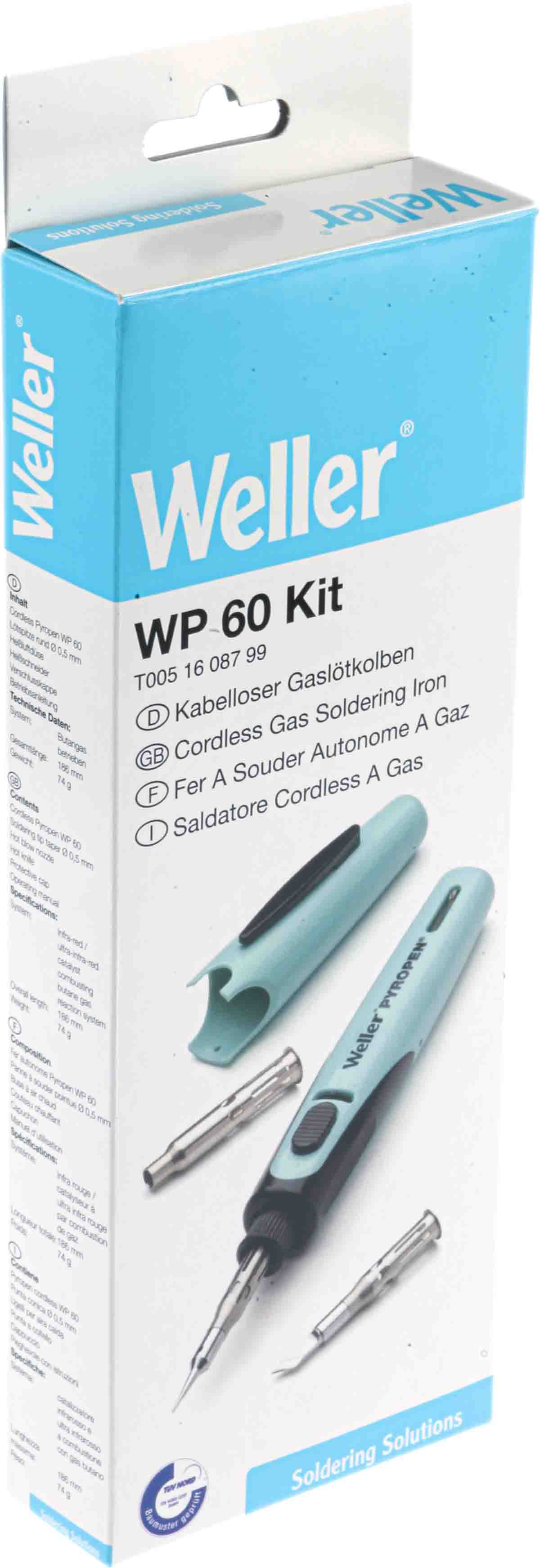 This is WP60K Gas Soldering Iron manufactured by Weller. The manufacturer part number is T0051608799. It comes in soldering iron configuration.