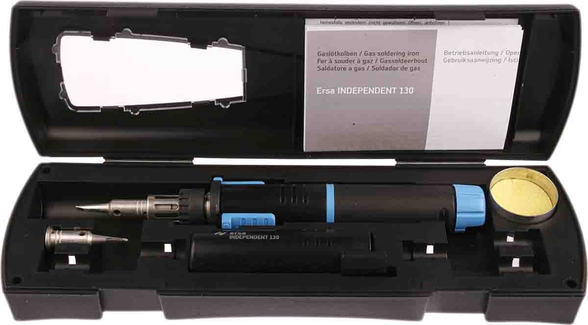 This is Soldering Iron Kit for use with Independent 130 Gas Soldering Iron manufactured by Ersa. The manufacturer part number is G13400041. It comes in soldering iron kit configuration.
