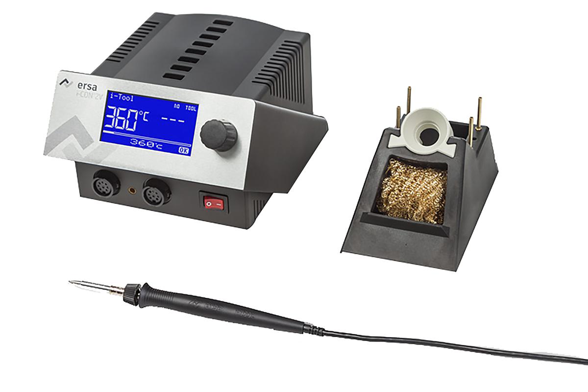 This is Soldering Station 230V +150°C to +450°C manufactured by Ersa. The manufacturer part number is 0IC2200V0C. Additionally, the product is supplied with 2 outputs. It features a remarkable lcd display. It has a maximum operating temperature of 450°c.