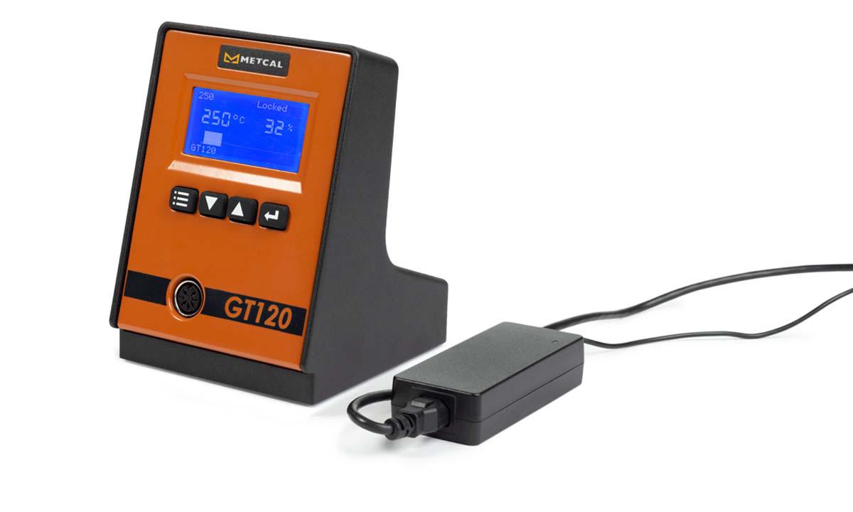 This is Soldering Station 120W 100-240V ac 450°C manufactured by Metcal. The manufacturer part number is GT120. It features a remarkable digital display. It has a maximum operating temperature of 450°c.