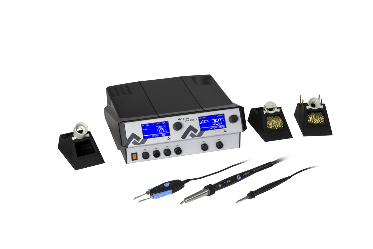 This is 0ICV4000AI Soldering Station 360W 230V ac manufactured by Ersa. The manufacturer part number is 0ICV4000AIC. Additionally, the product is supplied with 4 outputs. It features a remarkable lcd display. It has a maximum operating temperature of 450°c.