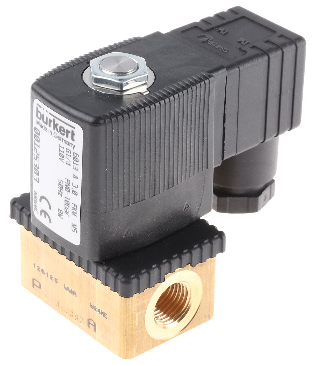This is Solenoid Valve 2 port NC 110 V ac 1/4in manufactured by Burkert. The manufacturer part number is 125303. Whereas, the minimum operating temperature of the product is -10°c. The product 6013, is a highly preferred choice for users. This product features 2 number of ports. The product's body is nicely designed from brass materials. It has a maximum operating temperature of +55°c. It comes in 2/2 configuration.