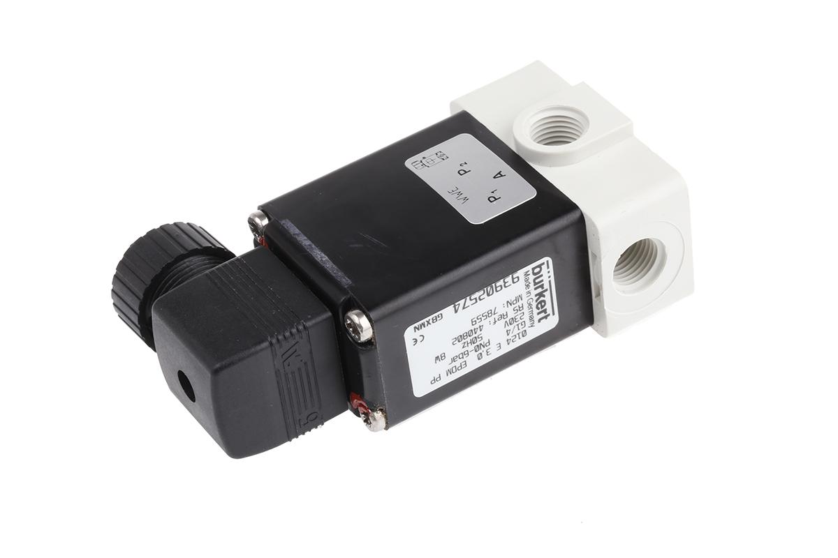 This is Solenoid Valve 3 port NO/NC 230 V ac 1/4in manufactured by Burkert. The manufacturer part number is 078559. The product 0124, is a highly preferred choice for users. This product features 3 number of ports. The product's body is nicely designed from pp materials. It has a maximum operating temperature of +55°c. It comes in 3/2 configuration.