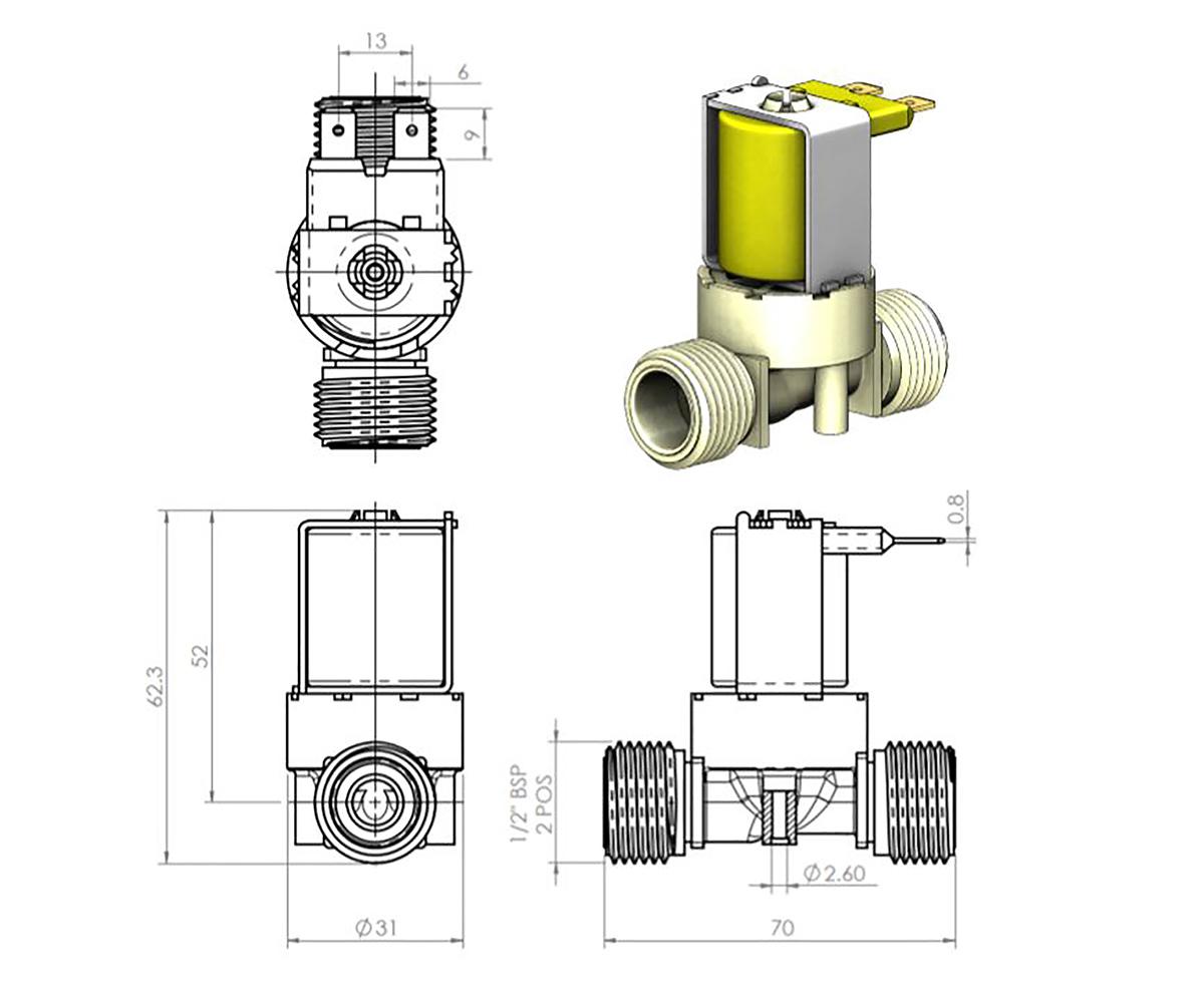 This is Solenoid Valve 2 port NC 24 V ac/dc 1/2in manufactured by RS PRO. The manufacturer part number is 190-4135. It has a maximum operating temperature of +60°c. This product features 2 number of ports. It comes in 2 (port) configuration.