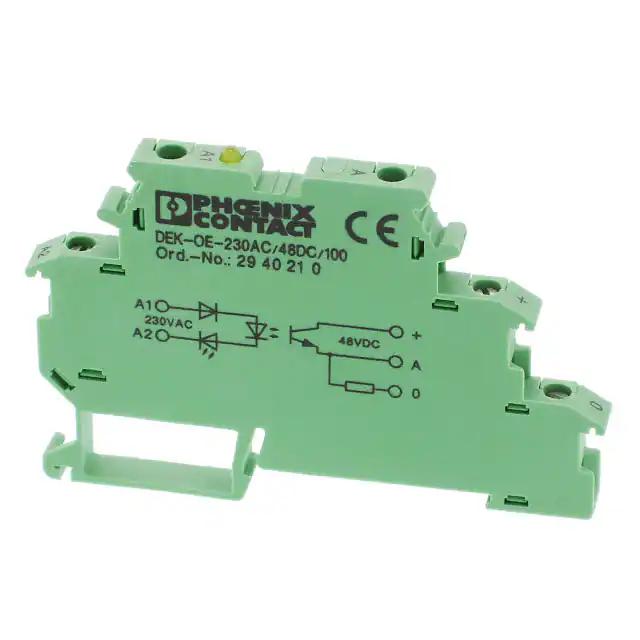 This is manufactured by Phoenix Contact. The manufacturer part number is 2940210. The product is available in din rail configuration. The product dek-oe-230ac/48dc/100, is a highly preferred choice for users. Whereas, the minimum operating temperature of the product is -20°c. It has a maximum operating temperature of +60°c. It is assigned with possible HTSUS value of 8536.49.0055. The product is rohs compliant. Moreover, it has screw terminal terminal style. Moreover, the product comes in [Package/ Case]. The possible product's input voltage is 230vac. It has a typical 100 ma load current. Furthermore, it has adc output. It is shipped in bulk. Its typical moisture sensitivity level is 1 (unlimited). It has an integral spst-no (1 form a) circuit. It has a long 4 weeks standard lead time. The product dek-oe, is a highly preferred choice for users. The given load voltage is 3 v ~ 48 v. The product is designated with the ear99 code number