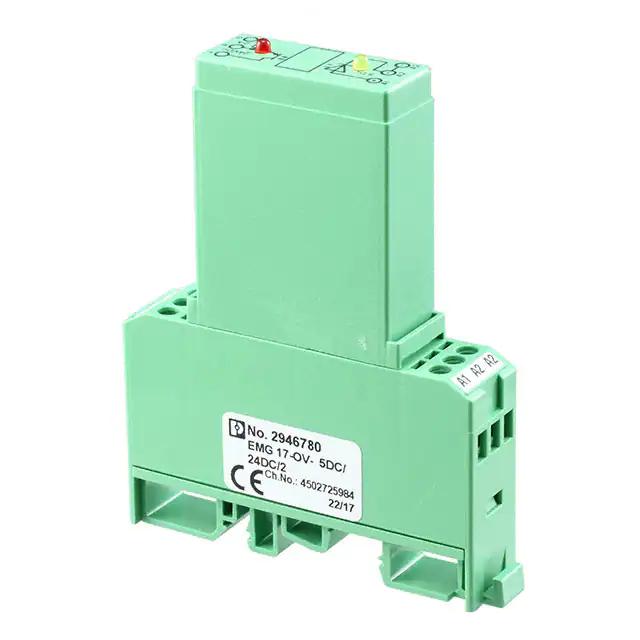 This is manufactured by Phoenix Contact. The manufacturer part number is 2946780. The product is available in din rail configuration. It is assigned with possible HTSUS value of 8536.41.0060. It is shipped in bulk. The product emg, is a highly preferred choice for users. The product is rohs compliant. Moreover, it has spring terminal terminal style. It has a typical 2 a load current. Furthermore, it has adc output. The possible product's input voltage is 5vdc. It has an integral spst-no (1 form a) circuit. The given load voltage is 10 v ~ 30 v. Its typical moisture sensitivity level is 1 (unlimited). The product is designated with the ear99 code number