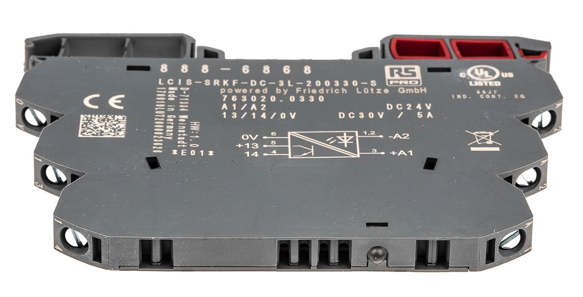 This is 5 A SPNO Solid State Relay DC DIN Rail MOSFET 30 V Maximum Load manufactured by RS Pro. The manufacturer part number is 888-6868. The given dimensions of the product include 6.2 x 73 x 93mm. The terminal is a screw type. Its accurate length is 6.2mm. The product is available in din rail configuration. The product comes in 73mm depth. In addition, the height is 93mm.