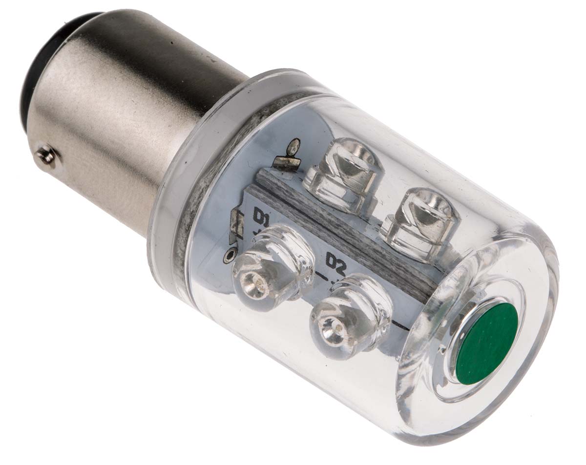 This is LED Beacon Lamp Green BA15d 24 V ac/dc 15°View 6 Chip 1000mcd per Chip manufactured by RS Pro. The manufacturer part number is 209-333. The product has a current rating of 20 ma. Moreover, the product has a nominal 24 v ac/dc voltage rating.