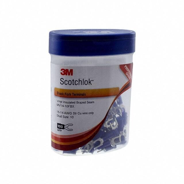 This is manufactured by 3M. The manufacturer part number is MV14-10FBX-BOTTLE. It is assigned with possible HTSUS value of 8536.90.4000. The product is rohs compliant. It is designed from highly reliable vinyl insulating material. The product has an integral 0.850" (21.59mm) overall length. In addition, it is reach unaffected. The product's insulation diameter includes 0.170" (4.32mm). The terminal is a standard type. It is shipped in bulk. Moreover, the product has a wire gauge of 14-16 awg. Its outer edges are 0.300" (7.62mm) wide. Furthermore, the product is galvanized with excellent tin contact finishing. Its typical moisture sensitivity level is 1 (unlimited). The product features crimp termination style. It has a long 3 weeks standard lead time. The product consists of 10 stud. The splendid features of the product include brazed seam. The product is available in free hanging (in-line) configuration. It has a classic blue colour. The product scotchlok™, is a highly preferred choice for users. Insulation Option: insulated. The product is designated with the ear99 code number Moreover, it corresponds to mv14, a base product number of the product. The product is made from sturdy copper, etp materials.