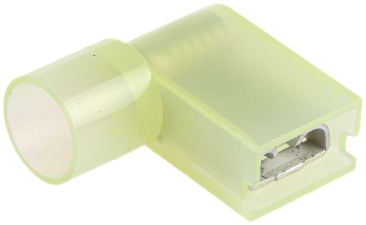 This is Insulated Crimp Flag Terminal 4mm² to 6mm² 12AWG to 10AWG Yellow manufactured by RS Pro. The manufacturer part number is 125-1951. The bespoke tab is 0.8mm thick. The tab is 6.35mm wide. In addition, female is the available "Gender" of the product. It has a robust nylon insulation material. Insulation Option: insulated. It comes in flag terminal configuration. The product is made from sturdy brass materials.