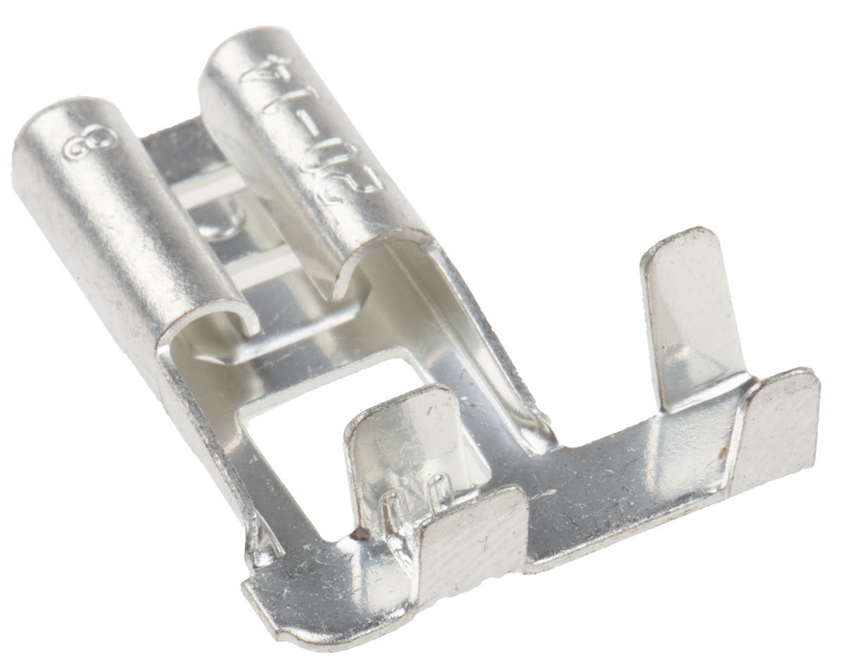 This is Uninsulated Crimp Flag Terminal 1.5mm² to 2.5mm² 16AWG to 14AWG Grey Tin Plated manufactured by RS Pro. The manufacturer part number is 488-1336. The bespoke tab is 0.8mm thick. The tab is 6.35mm wide. In addition, female is the available "Gender" of the product. Insulation Option: uninsulated. It comes in flag terminal configuration. The product is made from sturdy brass materials.