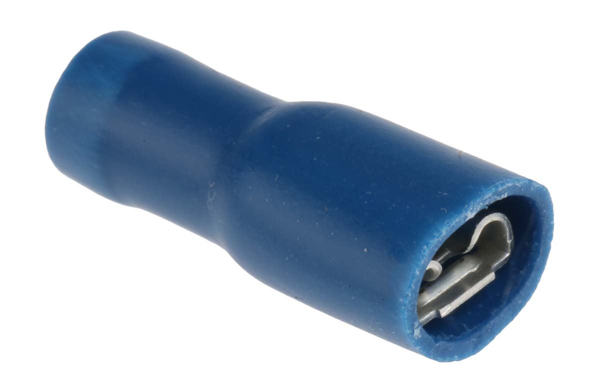This is 38 Series Blue Insulated Crimp Receptacle 4.8 x 0.5mm 1.5mm² to 2.5mm² 16AWG to 14AWG Tin Plated manufactured by RS Pro. The manufacturer part number is 534-755. In addition, female is the available "Gender" of the product. It has a robust vinyl insulation material. Insulation Option: insulated. It comes in receptacle configuration. The product is made from sturdy brass materials.