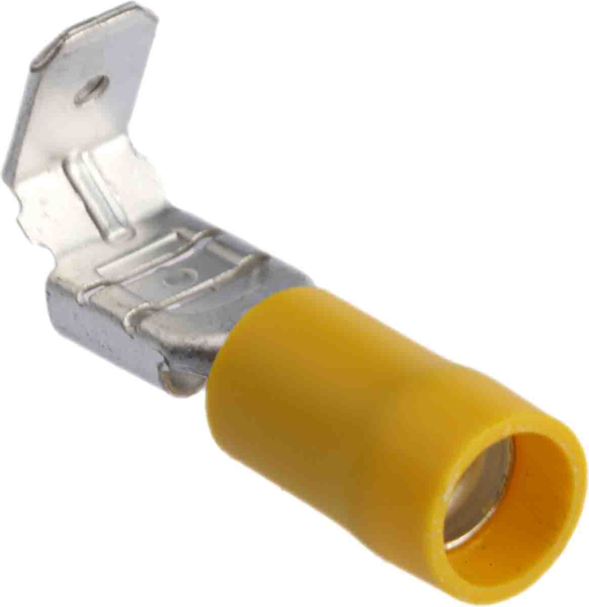 This is Insulated Crimp Piggyback Terminal 6.35 x 0.8mm 2.5mm² to 6mm² 12AWG to 10AWG Yellow manufactured by RS Pro. The manufacturer part number is 534-878. The bespoke tab is 0.8mm thick. The tab is 6.35mm wide. In addition, female is the available "Gender" of the product. It has a robust vinyl insulation material. Insulation Option: insulated. It comes in piggyback terminal configuration. The product is made from sturdy brass materials.