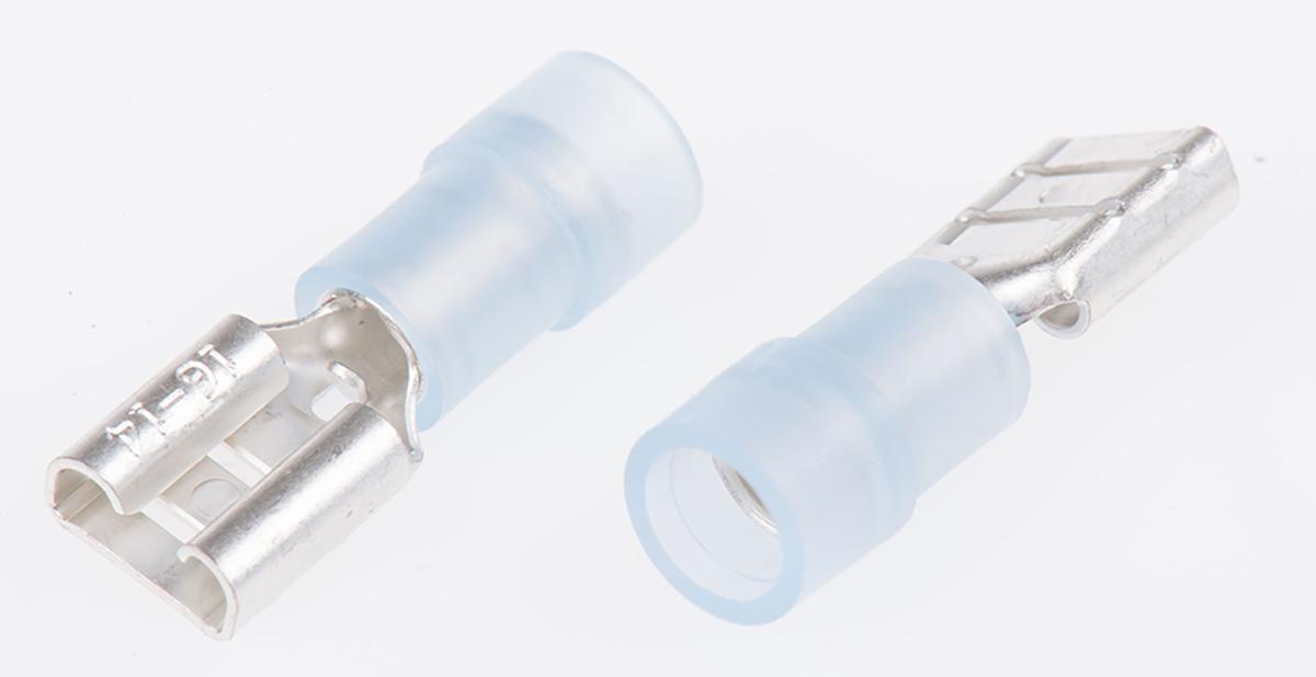 This is FDNYD2 Series Blue Insulated Crimp Receptacle 6.35 x 0.8mm 1.5mm² to 2.5mm² 16AWG to 14AWG Copper Plated manufactured by RS Pro. The manufacturer part number is 267-4142. In addition, female is the available "Gender" of the product. It has a robust nylon insulation material. Insulation Option: insulated. It comes in receptacle configuration. The product is made from sturdy brass materials.