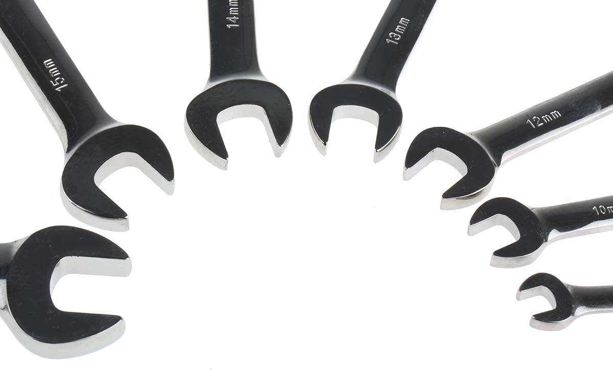 This is 7 Pieces Chrome Vanadium Steel Metric Ratchet Spanner Set manufactured by RS Pro. The manufacturer part number is 487-163. The product is made from highly stable and reliable chrome vanadium steel. A quality product with a nice chrome finish.
