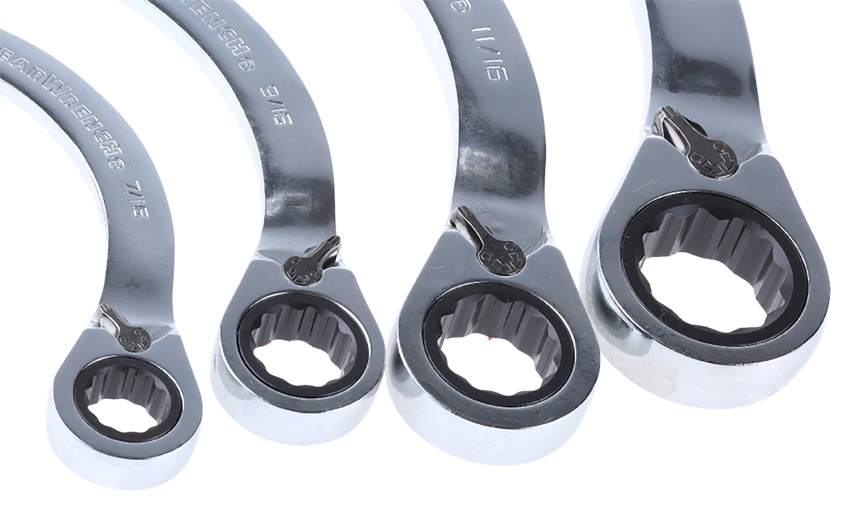 This is 4 Pieces Chrome Vanadium Steel Imperial Ratchet Spanner Set manufactured by RS Pro. The manufacturer part number is 537-5905. The product is made from highly stable and reliable chrome vanadium steel. A quality product with a nice mirror finish.