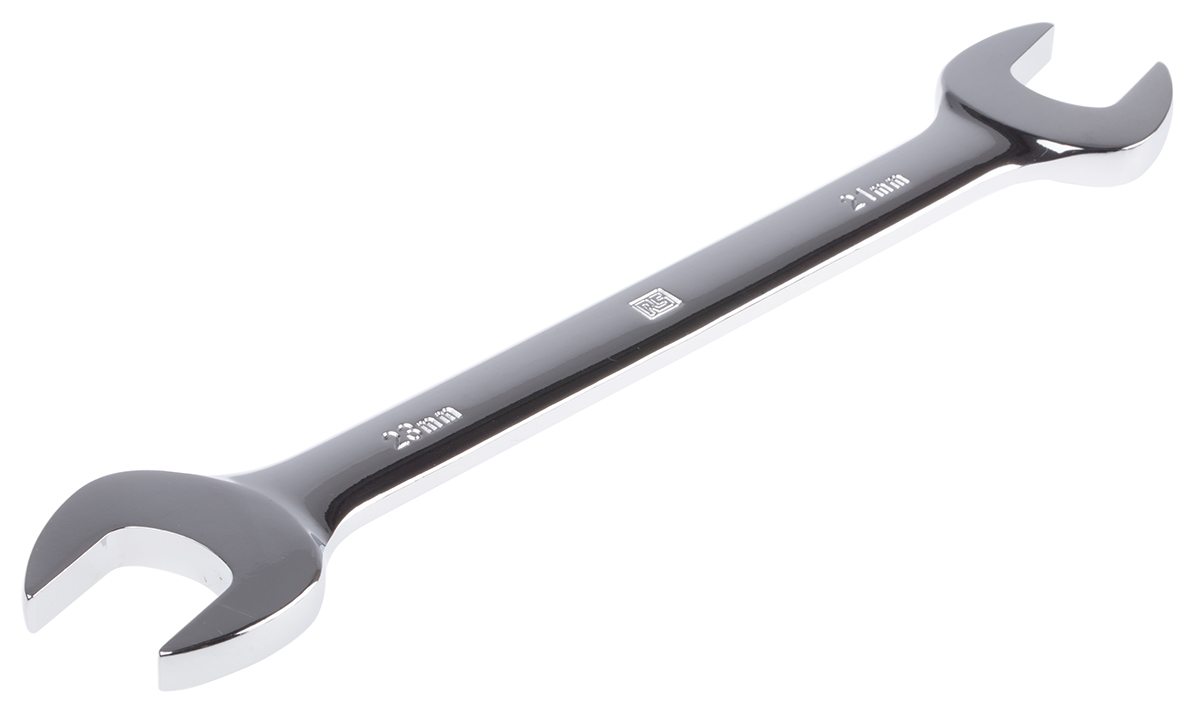 This is 21mmx23mm Double Ended Open Spanner 225 mm length manufactured by RS Pro. The manufacturer part number is 495-3756. A quality product with a nice chrome finish. The product is made from highly stable and reliable chrome vanadium steel. The product is available in 21 x 23 mm size.