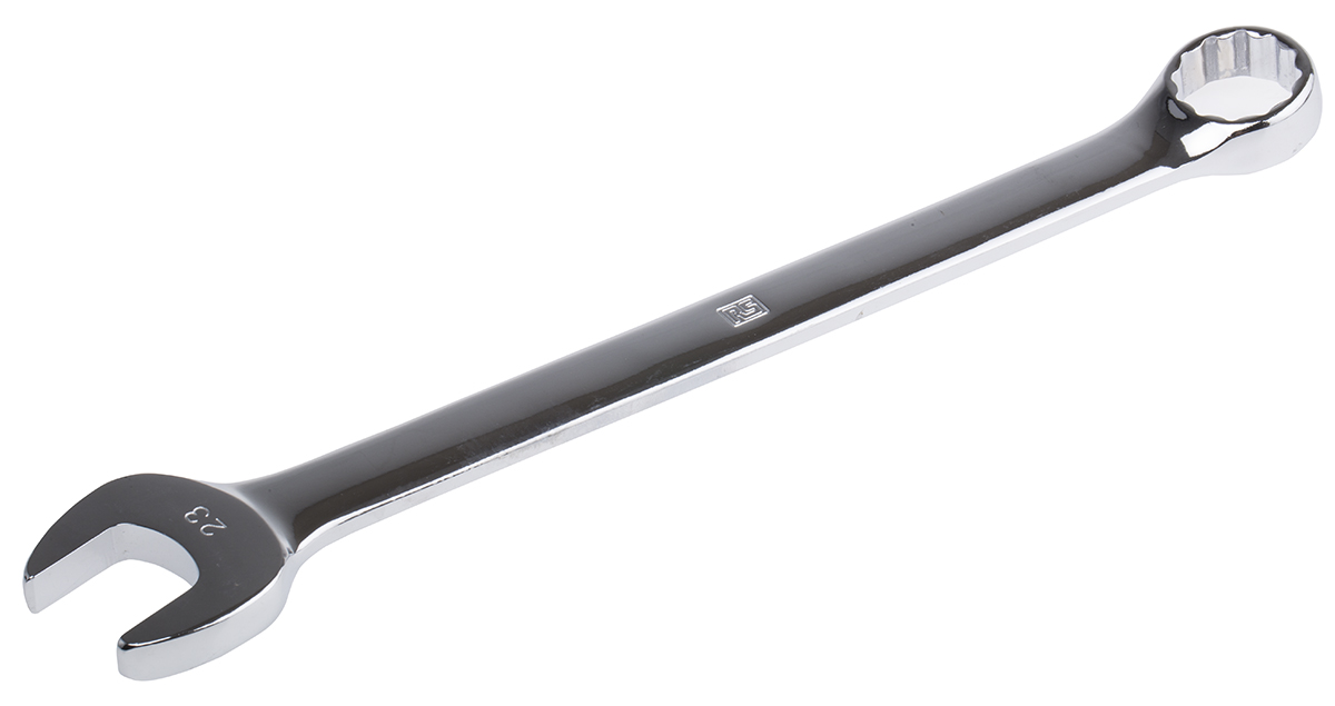 This is 23 mm 295 mm Chrome Vanadium Steel Combination Spanner manufactured by RS Pro. The manufacturer part number is 495-3582. A quality product with a nice chrome finish. The product is made from highly stable and reliable chrome vanadium steel. The product is available in 23 mm size.