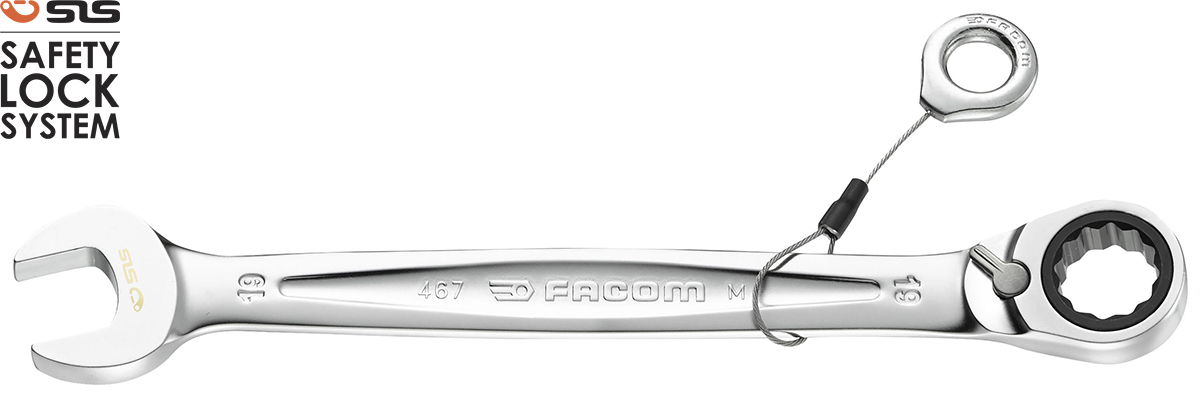 This is 22 mm Hexagon SLS Height Safe Combination Ratchet Spanner Reversible 287.8 mm Length manufactured by Facom. The manufacturer part number is 467.22SLS. A quality product with a nice satin chrome finish. The product is available in 22 mm size.