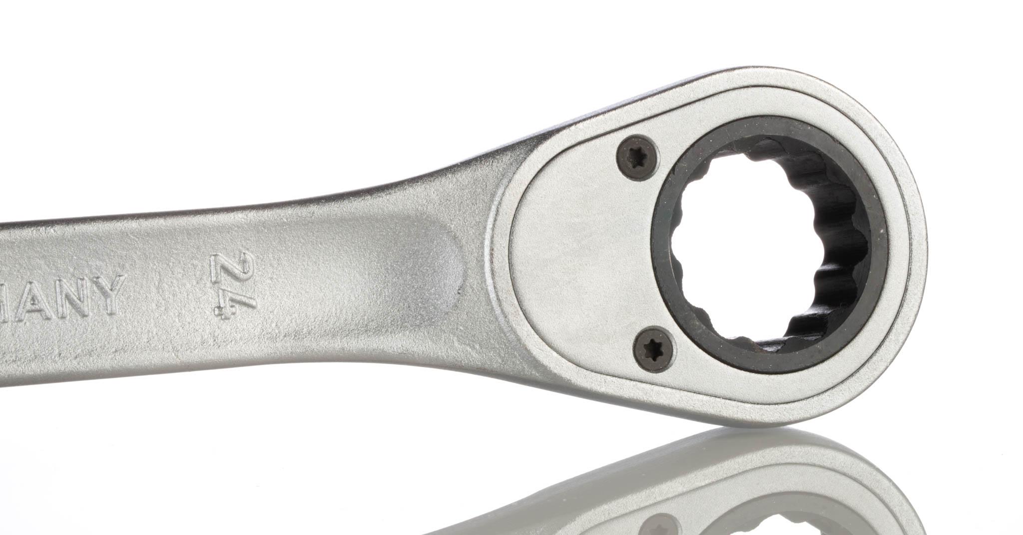 This is 24 mm 325 mm Vanadium Steel Combination Ratchet Spanner manufactured by Gedore. The manufacturer part number is 7 R 24. A quality product with a nice chrome finish. The product 7 r, is a highly preferred choice for users. The product is made from highly stable and reliable vanadium steel. The product is available in 24 mm size.