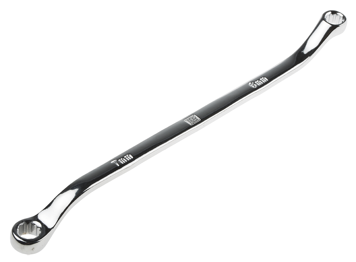 This is 6 x 7 mm Offset Ring Spanner 165 mm length manufactured by RS Pro. The manufacturer part number is 495-3970. A quality product with a nice chrome finish. The product is made from highly stable and reliable chrome vanadium steel. The product is available in 6 x 7 mm size.