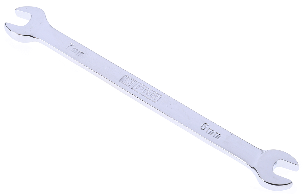 This is 6mmx7mm Double Ended Open Spanner 126 mm length manufactured by RS Pro. The manufacturer part number is 495-3784. A quality product with a nice chrome finish. The product is made from highly stable and reliable chrome vanadium steel. The product is available in 6 x 7 mm size.