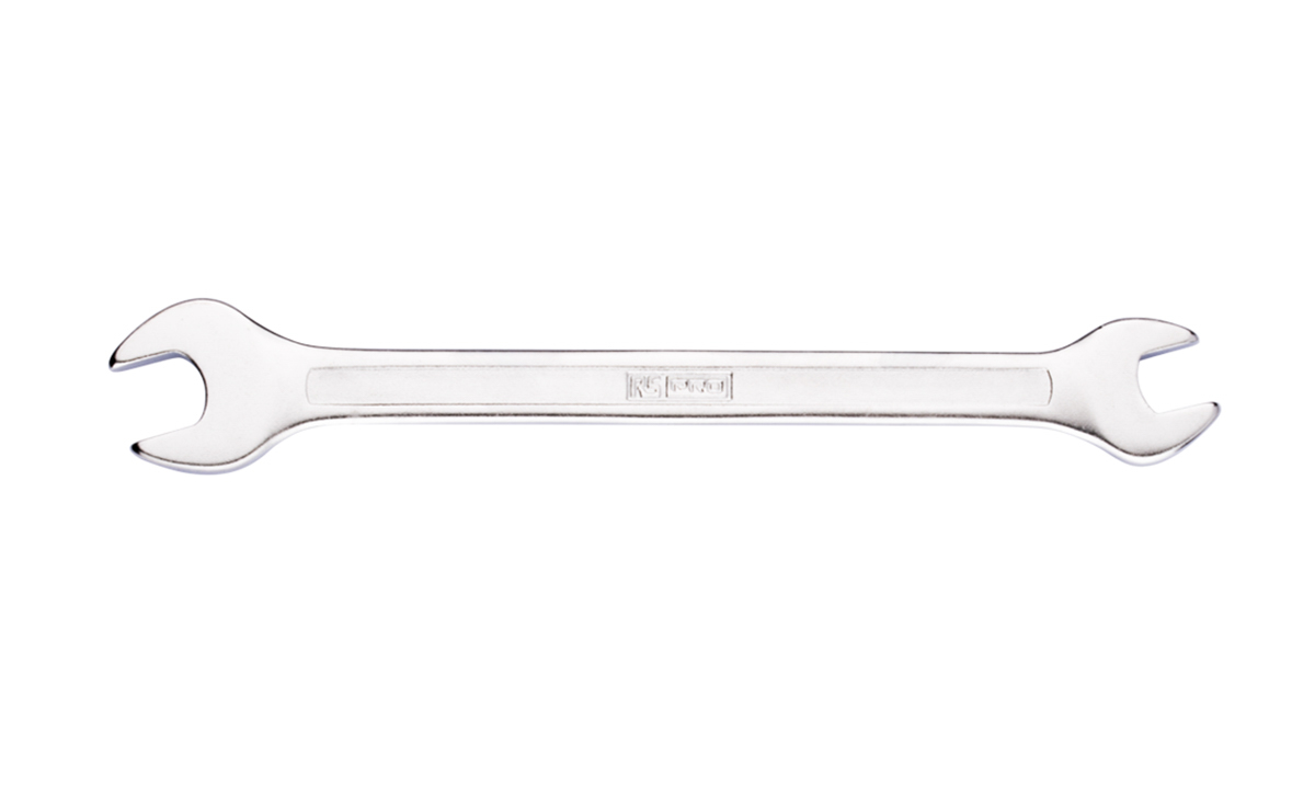 This is 15.2mm x 16.4mm Open Ended Spanner manufactured by RS PRO. The manufacturer part number is 192-3719. A quality product with a nice matt chrome finish. The product is available in 5 x 5.5 mm size.