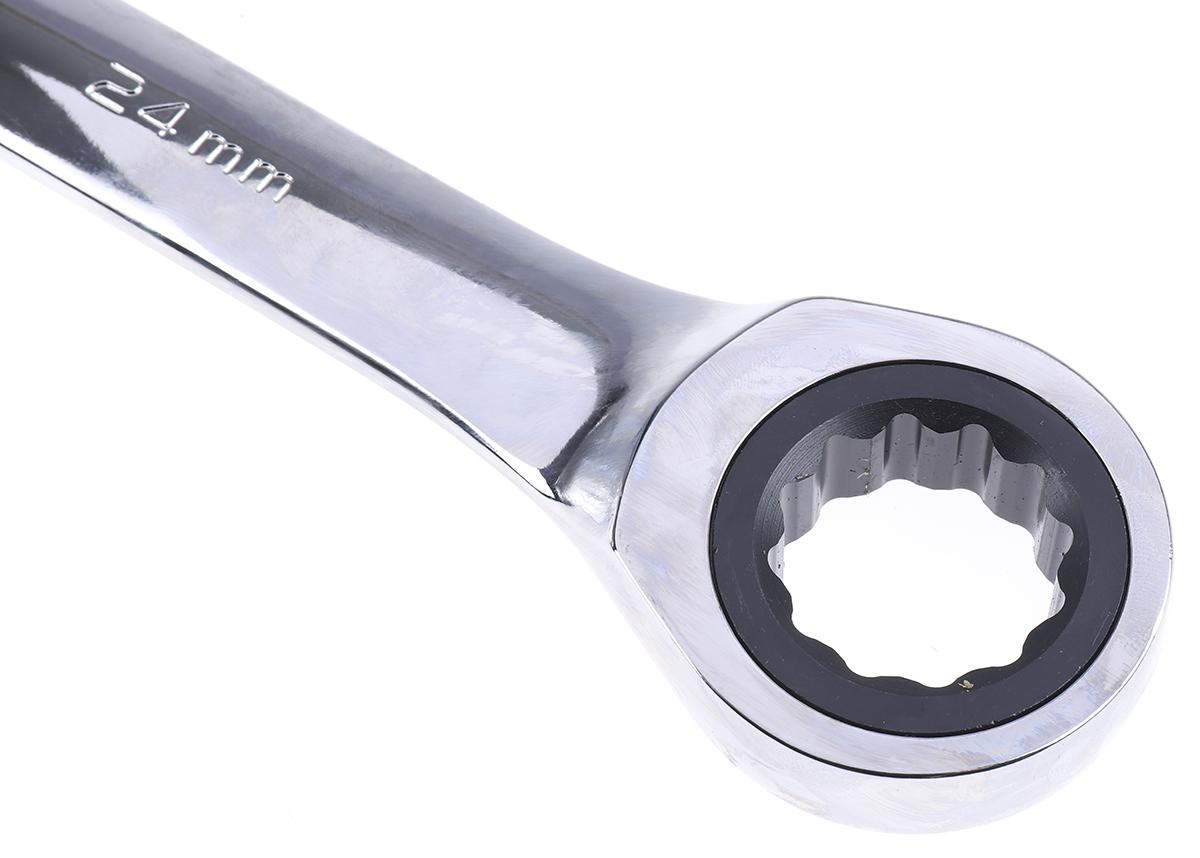 This is 24 mm Combination Ratchet Spanner manufactured by GearWrench. The manufacturer part number is 9124. A quality product with a nice nickel chrome plated finish. The product is made from highly stable and reliable hardened steel. The product is available in 24 mm size.