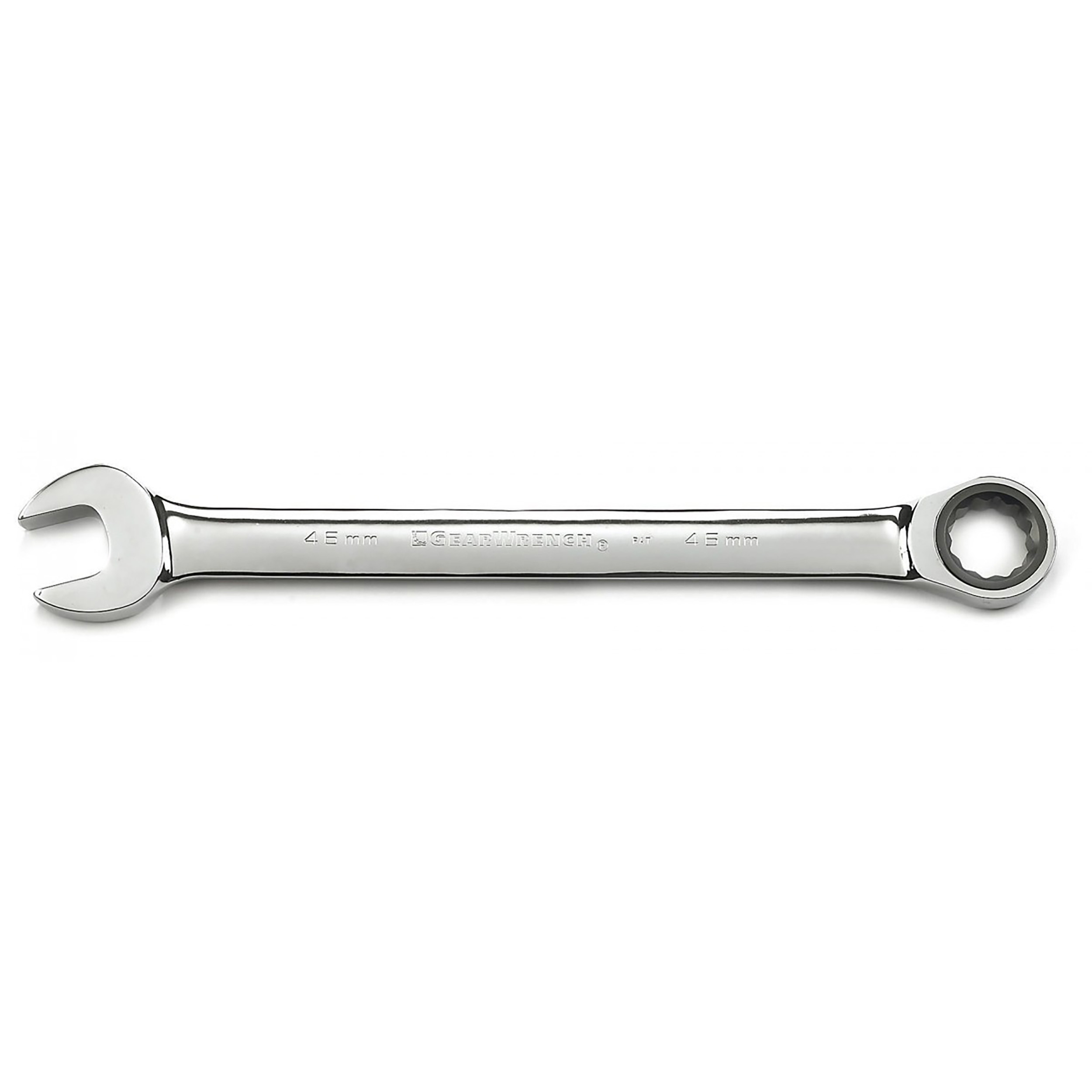 This is 46 mm Combination Ratchet Spanner manufactured by GearWrench. The manufacturer part number is 9146D. A quality product with a nice chrome finish. The product is available in 46 mm size.