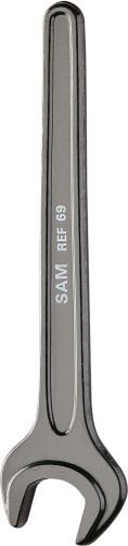 This is Metric 22 mm Single Ended Open Spanner manufactured by SAM. The manufacturer part number is 69-22. The product is available in 22 mm size.