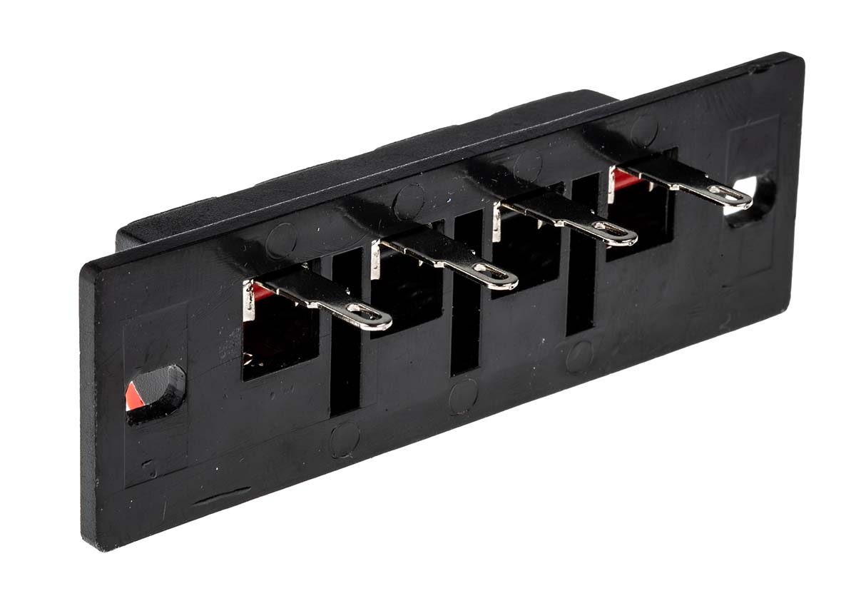 This is Panel Mount Speaker Terminal Socket 4 Way 3A Quick Connect Termination manufactured by RS Pro. The manufacturer part number is 392-683. The product has a current rating of 3a. The product is available in panel mount configuration. In addition, female is the available "Gender" of the product. The product contains 4 contacts.