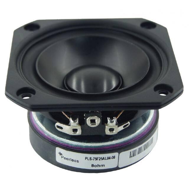 This is manufactured by Peerless by Tymphany. The manufacturer part number is PLS-75F25AL04-08. The frequency range includes 100 hz ~ 20 khz. Port location: top. It is assigned with possible HTSUS value of 8518.29.8000. It features a power rating of 25 w. It comes in full range configuration. It has the maximum seated height of 1.862" (47.30mm) 106.89hz is the self-resonant frequency of the product. It is shipped in bulk. The product's diameters include 3.071" l x 3.071" w (78.00mm x 78.00mm). It has an impedance value of 7.42 ohms. The product features solder eyelet(s) termination style. Its typical moisture sensitivity level is 1 (unlimited). The product pls, is a highly preferred choice for users. It is a round, square frame product with unique specifications. This product use magnetic technology. The product is designated with the ear99 code number