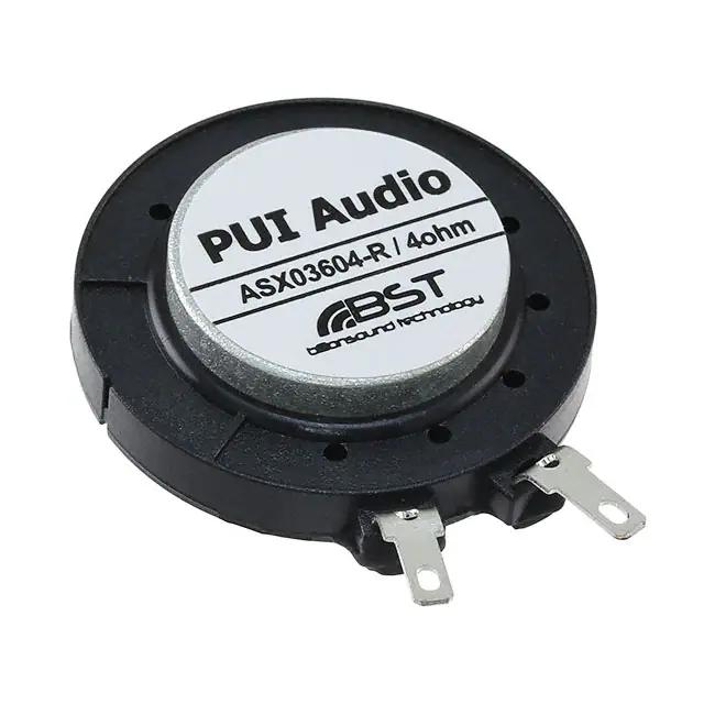 This is manufactured by PUI Audio, Inc.. The manufacturer part number is ASX03604-R. The frequency range includes 400 hz ~ 10.5 khz. Port location: top. It is assigned with possible HTSUS value of 8518.29.8000. The product is rohs3 compliant. It features a power rating of 3 w. It comes in exciter configuration. It has the maximum seated height of 0.492" (12.50mm) 400hz is the self-resonant frequency of the product. It is a round product with unique specifications. It has an impedance value of 4 ohms. It is shipped in bulk. The product's diameters include 1.445" dia (36.70mm). The product features quick connect termination style. It has a long 19 weeks standard lead time. Its typical moisture sensitivity level is not applicable. The product asx, is a highly preferred choice for users. The maximum power of the product is 5 w. This product use magnetic technology. The product is designated with the ear99 code number