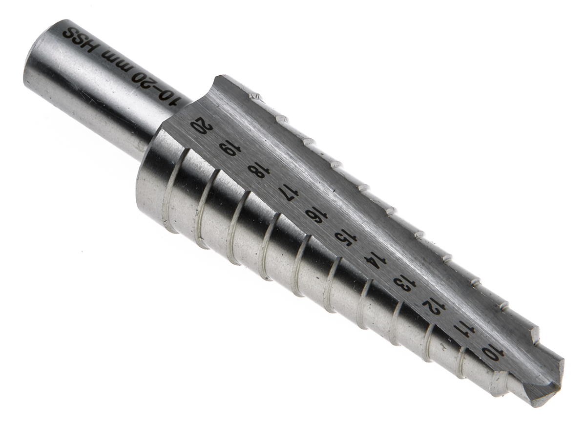 This is HSS 10 → 20mm Step Drill Bit 11 Steps manufactured by RS Pro. The manufacturer part number is 232-579. The product is made from highly stable and reliable hss.