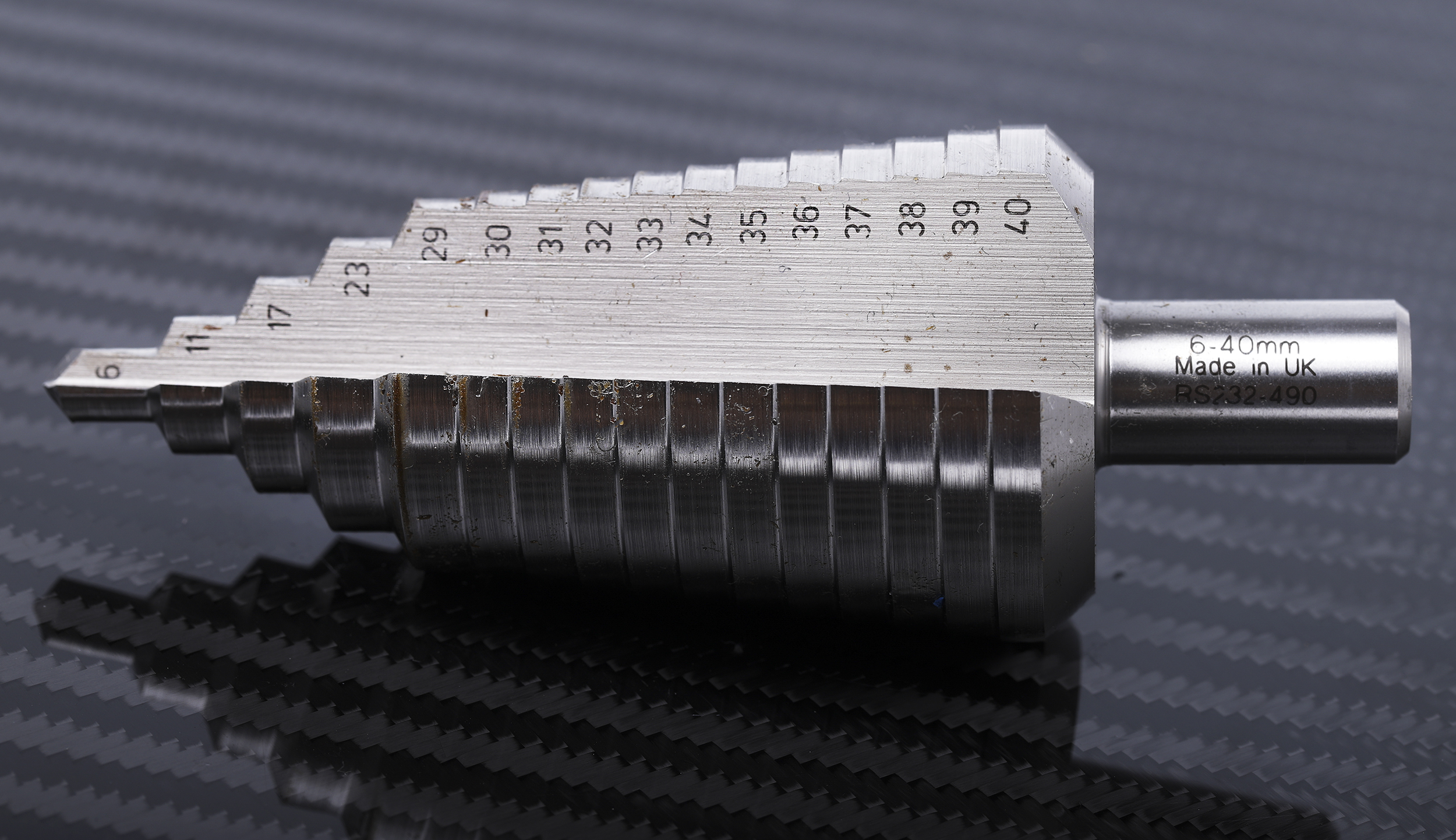 This is HSS 6 → 40mm Step Drill Bit 15 Steps 3mm Max Drilling Thickness manufactured by RS Pro. The manufacturer part number is 232-490. The product is made from highly stable and reliable hss.