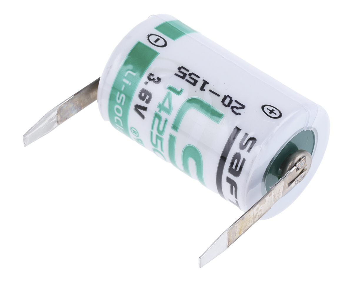This is 3.6V Lithium Thionyl Chloride 1/2 AA Battery 1200mAh manufactured by Saft. The manufacturer part number is LS14250CNR. The module has the capacity of 1.2ah. The given dimensions of the product include 14.44 x 25.15mm. The terminal is a tagged type. The product is available in 1/2 aa size.