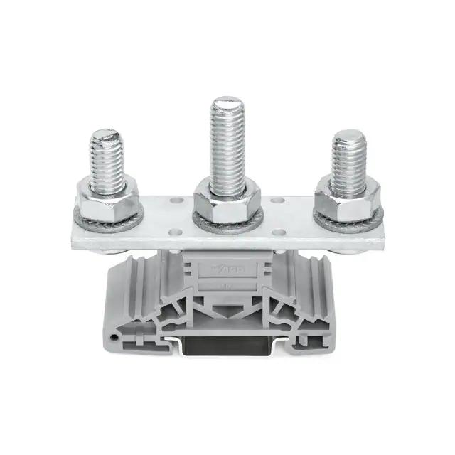 This is manufactured by WAGO Corporation. The manufacturer part number is 885-310. It is assigned with possible HTSUS value of 8536.90.4000. The product is rohs3 compliant. Moreover, it has stud terminal style. It comes in post - triple configuration. The product carries possible position value of 2. A 6-120mm² of wire gauge. Additionally, the 2.626" (66.70mm) is the maximum height of the product. It has an integral gray housing colour. It carries ul94 v-0 of material flammability rating. It is shipped in box. Its typical moisture sensitivity level is not applicable. An IEC current of 269 a. The product carries 1 levels. While 250mcm (kcmil)-10 awg is its range or wire gauge. It has a long 12 weeks standard lead time. The built-in terminal is 33.8mm wide. The nominal voltage of the product is 1 kv. The product is available in din rail configuration. Its accurate length is 2.640" (67.06mm). The product is designated with the ear99 code number
