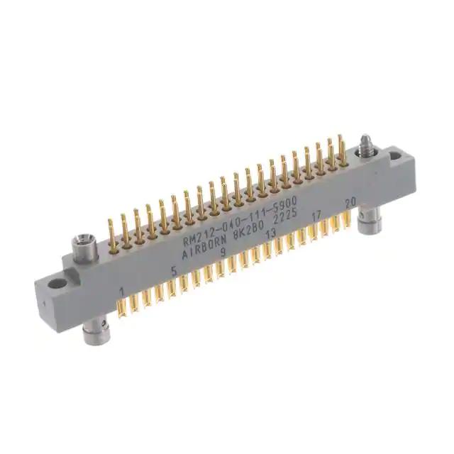 This is manufactured by AirBorn, Inc.. The manufacturer part number is RM212-040-111-5900. It is assigned with possible HTSUS value of 8536.69.8000. The product is rohs3 compliant. The product has -65°c ~ 125°c operating temperature range. The product carries possible position value of 40. It comes in 2 of rows. It has a sum of 20 columns. It is shipped in bag. plug, male pins Connector type offer robust functionality. Furthermore, the product is galvanized with excellent gold contact finishing. Its typical moisture sensitivity level is not applicable. The product features solder cup termination style. It has a long 7 weeks standard lead time. Additionally, the product's output is 3a The splendid features of the product include mating guide, mounting flange. The product is available in panel mount configuration. The product r, is a highly preferred choice for users. Moreover, the product is 0.075" (1.91mm) However, all is the Number of Positions Loaded. The product is designated with the ear99 code number