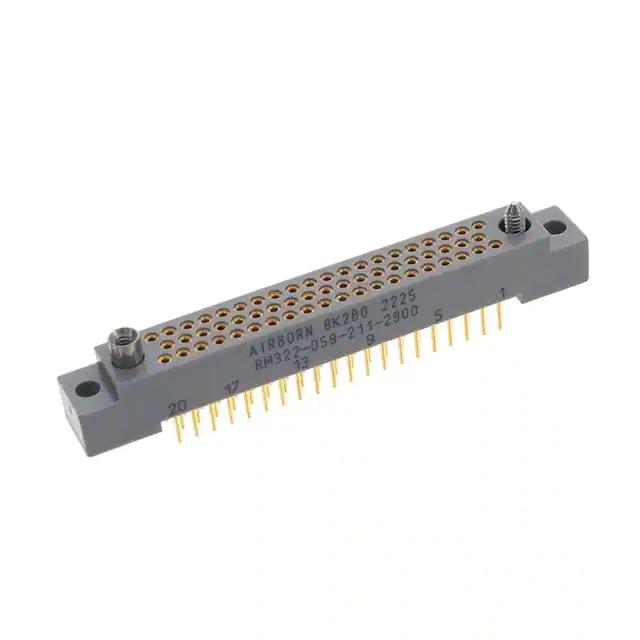 This is manufactured by AirBorn, Inc.. The manufacturer part number is RM322-059-211-2900. It is assigned with possible HTSUS value of 8536.69.4040. The product is rohs3 compliant. The product has -65°c ~ 125°c operating temperature range. The product carries possible position value of 59. It comes in 3 of rows. It is shipped in bag. receptacle, female sockets Connector type offer robust functionality. Furthermore, the product is galvanized with excellent gold contact finishing. Its typical moisture sensitivity level is not applicable. The product features solder termination style. It has a long 7 weeks standard lead time. Additionally, the product's output is 3a The splendid features of the product include mating guide, mounting flange. The product is available in through hole configuration. The product r, is a highly preferred choice for users. Moreover, the product is 0.075" (1.91mm) However, all is the Number of Positions Loaded. The product is designated with the ear99 code number