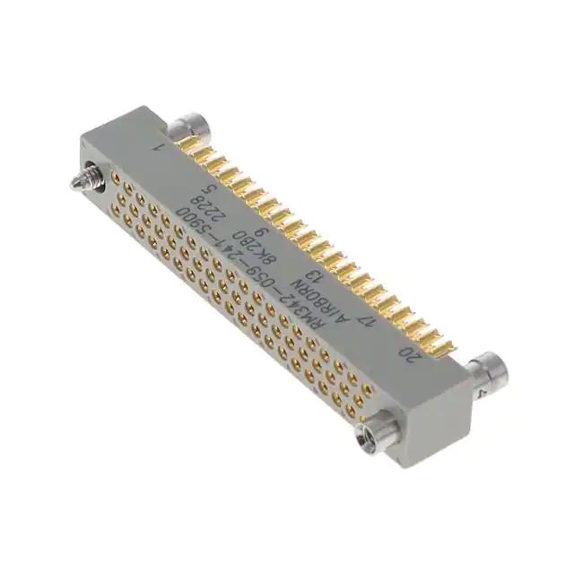 This is manufactured by AirBorn, Inc.. The manufacturer part number is RM342-059-241-5900. It is assigned with possible HTSUS value of 8536.69.4040. The product is rohs3 compliant. The product has -65°c ~ 125°c operating temperature range. The product carries possible position value of 59. It comes in 3 of rows. It is shipped in bag. receptacle, female sockets Connector type offer robust functionality. Furthermore, the product is galvanized with excellent gold contact finishing. Its typical moisture sensitivity level is not applicable. The product features solder cup termination style. It has a long 7 weeks standard lead time. Additionally, the product's output is 3a The splendid features of the product include mating guide. The product is available in free hanging (in-line) configuration. The product r, is a highly preferred choice for users. Moreover, the product is 0.075" (1.91mm) However, all is the Number of Positions Loaded. The product is designated with the ear99 code number