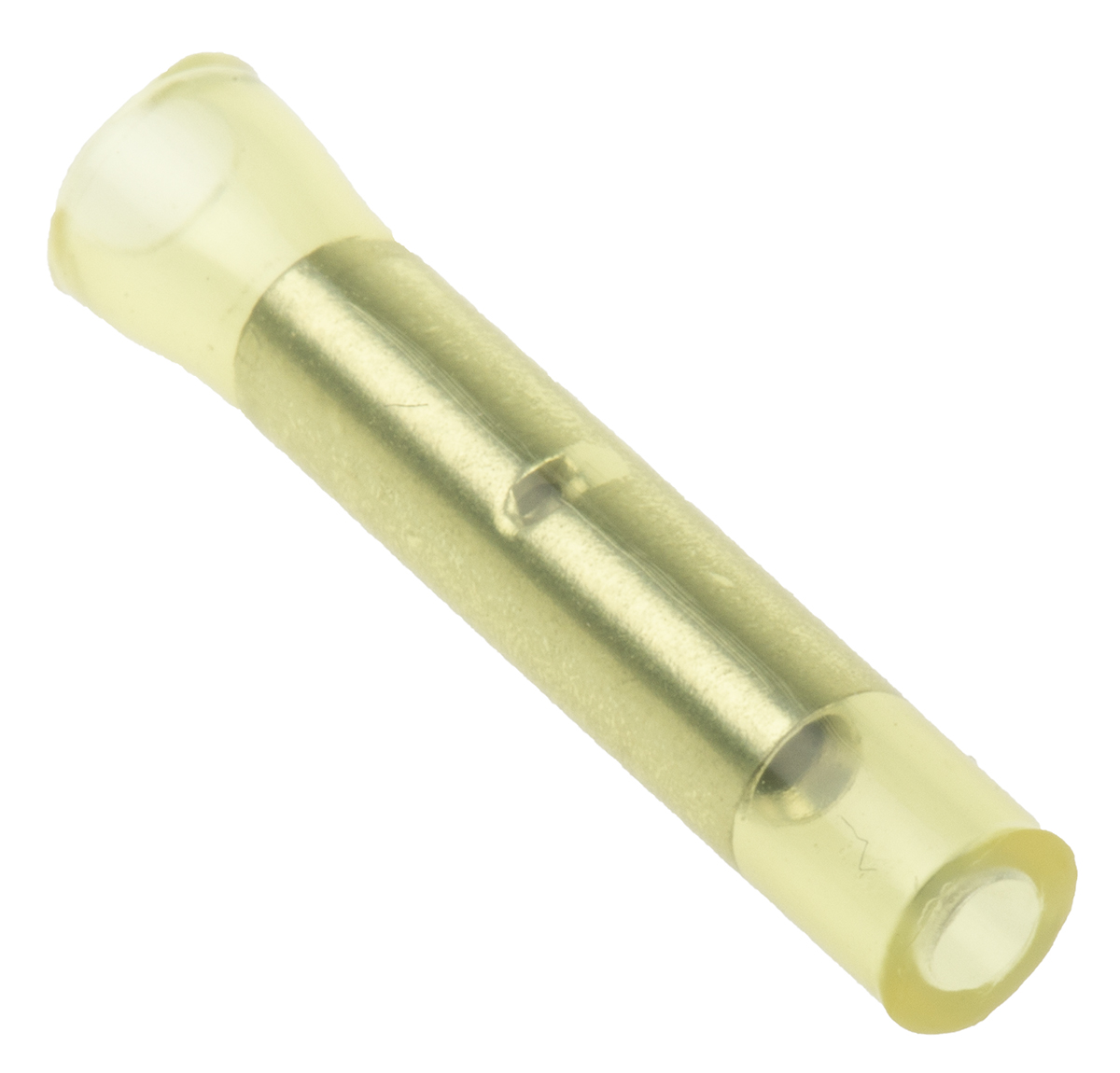 This is Butt Wire Splice Connector Yellow Insulated 26 → 22 AWG manufactured by RS Pro. The manufacturer part number is 239-4234. Its diameter is 2mm. It has a robust nylon insulation material. Insulation Option: insulated. The product is made from sturdy copper materials.