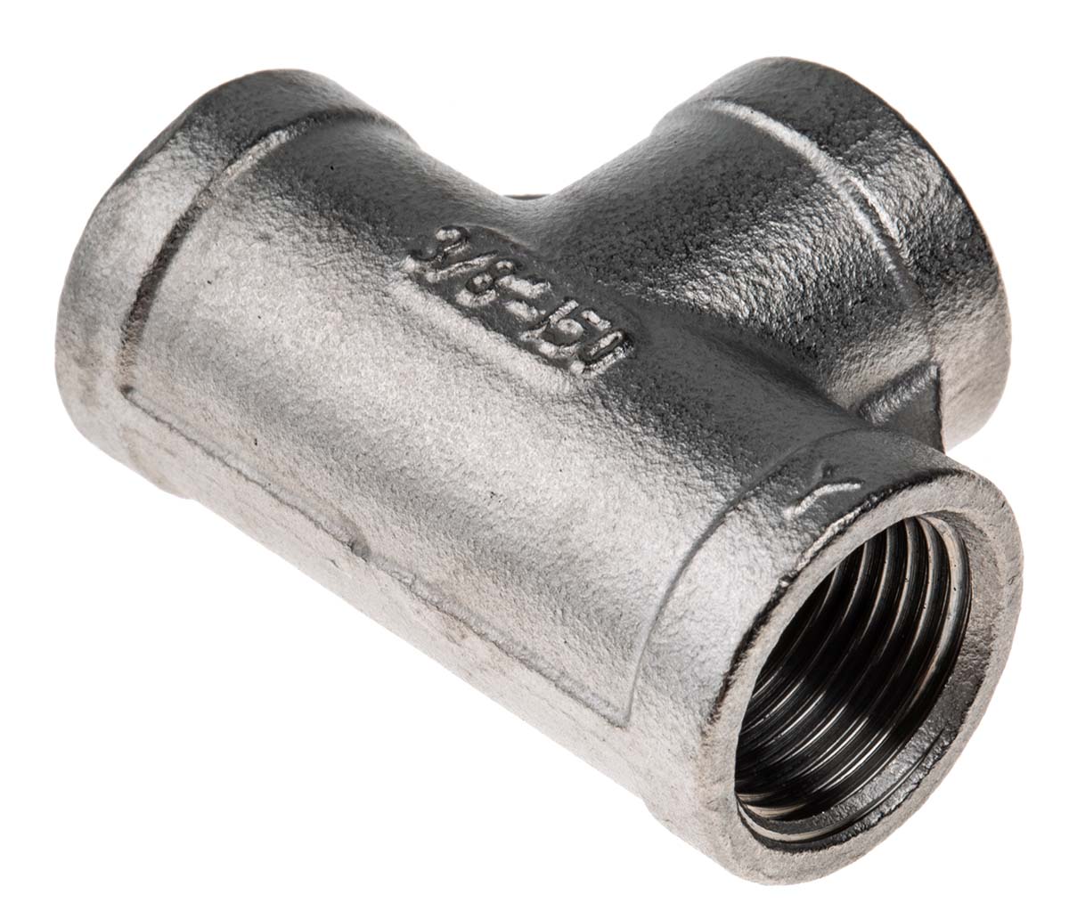 This is Stainless Steel Circular Tee 3/8in G(P) Female x 3/8in G(P) Female x 3/8 Female G(P) 1.73in manufactured by RS Pro. The manufacturer part number is 499-2896. Its accurate length is 43.942mm. It is a circular product with unique specifications.