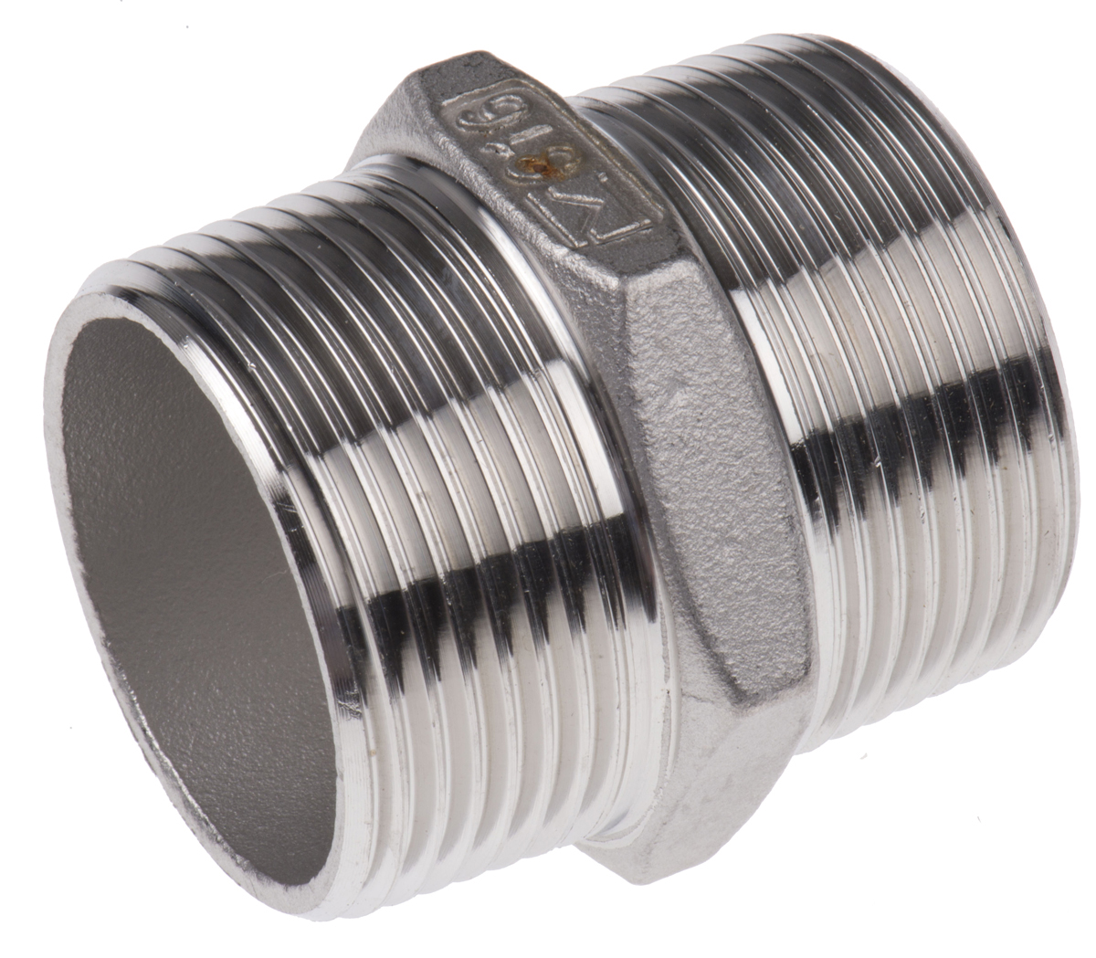 This is Stainless Steel Hexagon Hexagon Nipple 1-1/4in R(T) Male x 1-1/4in R(T) Male 2.03in manufactured by RS Pro. The manufacturer part number is 499-3170. Its accurate length is 51.562mm. It is a hexagon product with unique specifications.