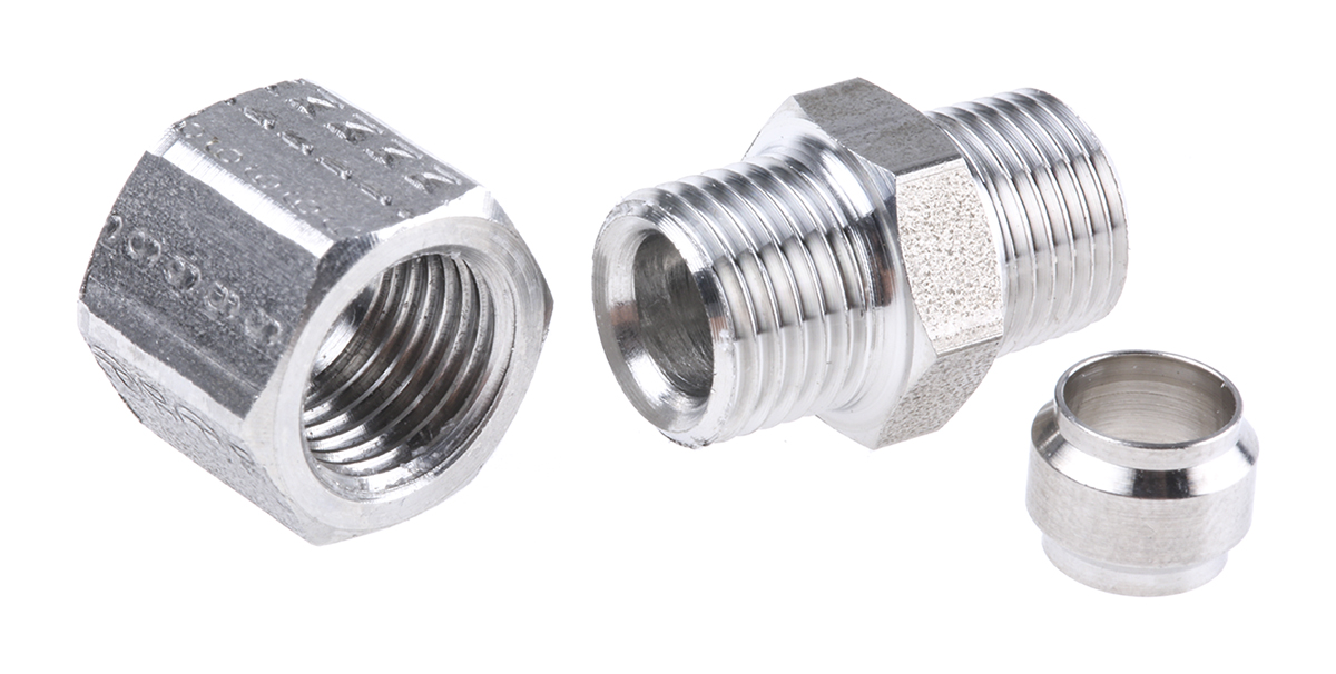 This is Stainless Steel Pipe Fitting Straight Coupler 1/8 in BSPT Male x6mm OD 8 MPa manufactured by Legris. The manufacturer part number is 1805 06 10. It is a hexagon product with unique specifications.